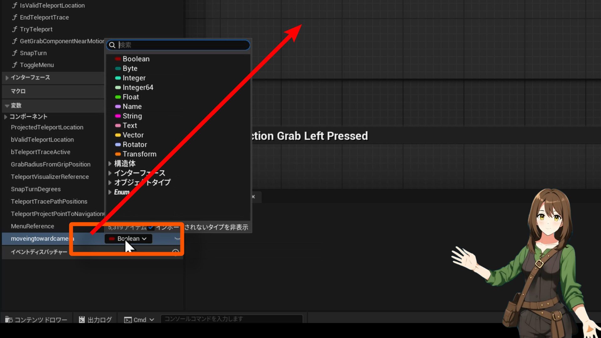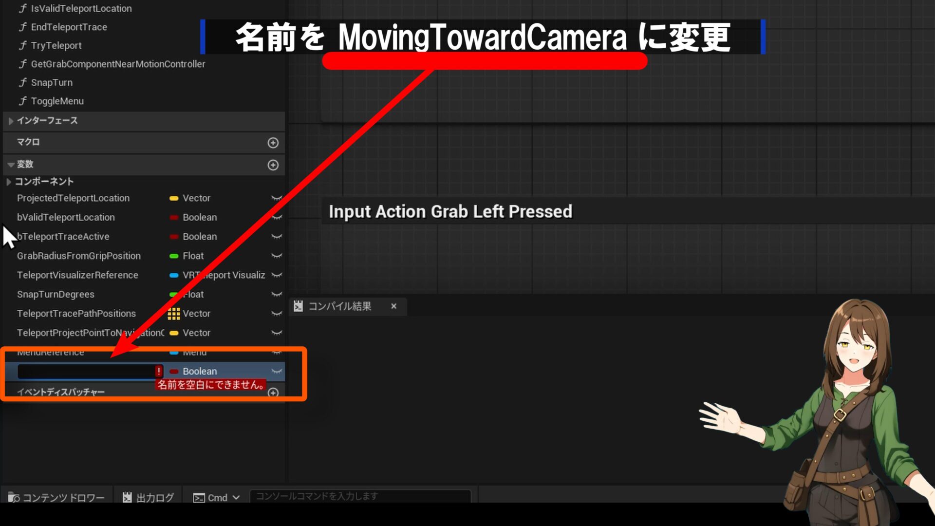 「MovingTowardCamera」という名前でBoolean(ブーリアン)型の変数を作成しましょう。