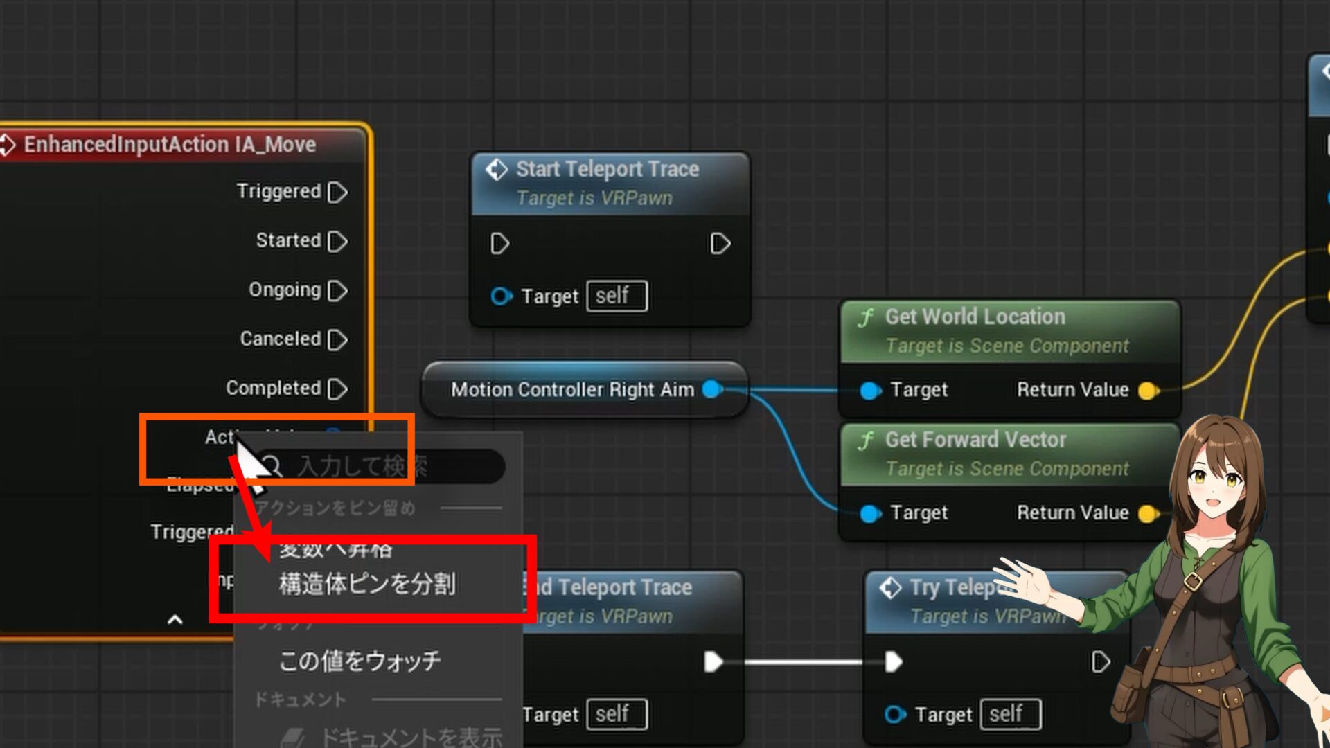 ピンを分割: 「Action Value」というピンを右クリックし、「構造体ピンを分割」を選択します。