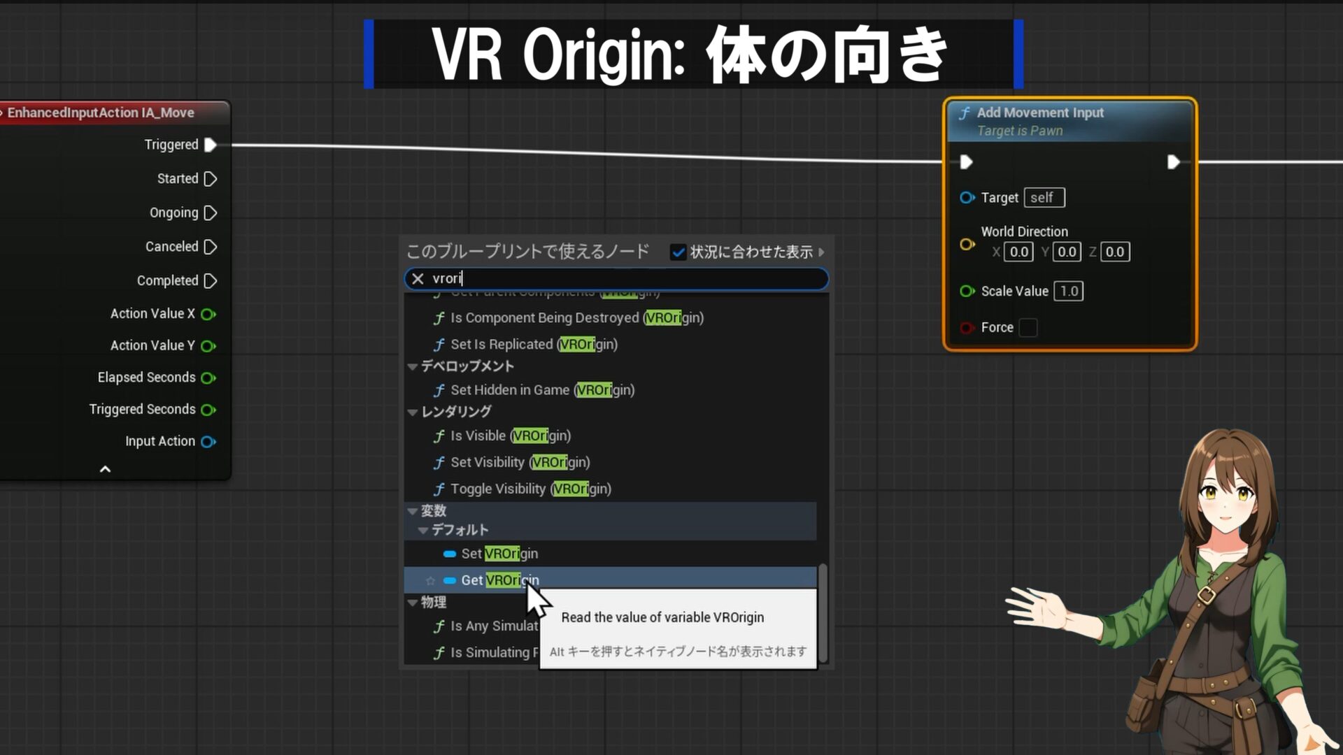 - VROriginを追加:右クリックで検索して貼り付けます